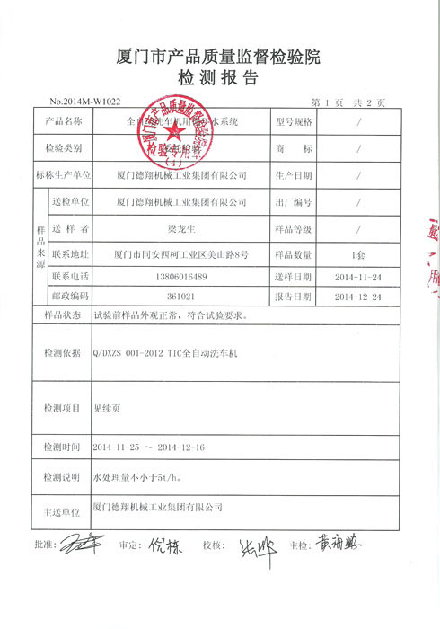 洗車機(jī)循環(huán)水系統(tǒng)檢測(cè)報(bào)告